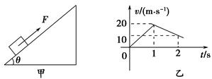 3、计算题 如图甲所示,质量为m=1 kg的物体置于倾角为=37°的固定且足够长的斜面上,对物体施以平行于斜面向上的拉力F,在t1=1 s时撤去拉力,物体运动的部分v?t图象如图乙所示.重力加速度g取10 m/s2.