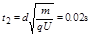 小球进入电场后其飞行时间决定于电场力产生的加速度ax,由力的独立作用原理,可以求出小球在电场中的运动时间t2。