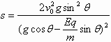 5、简答题 如图所示,质量为m,带电量为q的小球以初速v0从斜面上水平抛出,并落在斜面上.已知斜面倾角为θ,重力加速度为g,空间存在着方向水平向右的匀强电场,场强大小为E.求小球运动过程中离斜面的最远距离以及离出发点的最远距离各是多少?