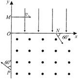轴正方向成60?角射出磁场,如图所示。不计粒子重力,求:
