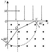 分别过N、P点作速度方向的垂线,相交于Q点,则Q是粒子在磁场中做匀速圆周运动的圆心,根据牛顿第二定律得: