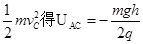 (2)以小球为研究对象,根据动能定理有mg2h+UAC·(-q)=