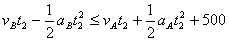 4、计算题 A、B两列火车在同一轨道上同向行驶,A在前,速度为vA=10m/s,B车在后,速度vB=30m/s。因大雾能见度低,B车在距A车500m时,才发现前方有A车,这时B车立即刹车,如果前方没有任何障碍物,B车还要滑行1800m才能停止。问: