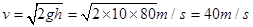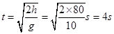 2、填空题 一物体距地面80m高处做自由落体运动,g="10" m/s2,则该物体落地时间为 s,其落地速度大小为 m/s.