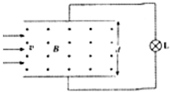 4、简答题 如图所示为实验用磁流体发电机原理图,两极间距d=20cm,磁场磁感应强度B=0.5T.若接入额定功率P=100W的灯泡,恰好正常发光,且灯泡L正常发光时的电阻R=100Ω,不计发电机内阻.求: