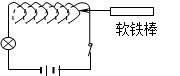 4、选择题  如图所示,闭合电路中一定长度的螺线管可自由伸缩,通电时灯泡有一定亮度,若将一软铁棒从螺线管一端迅速插入螺线管内,则在插入过程中(?)
