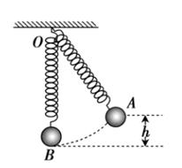 1、选择题 如图所示,质量为m的小球固定于轻质弹簧的一端,弹簧的另一端固定于O点,将小球拉至A处,弹簧恰好无形变。由静止释放小球,它运动到O点正下方B点间的竖直高度差为h,速度为v。下列说法正确的是(? )