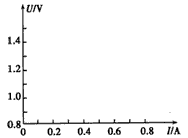 2、实验题 在“测电源的电动势和内阻”的实验中获得的四组数据如下:I1=0.15 A、U1=1.30 V,I2=0.25 A、U2=1.20 V,I3=0.35 A、U3=1.10 V,I4=0.45 A、U4=0.95 V。试根据数据在下图的坐标系中作出U-I图线,并根据图线求出电源电动势E=__________V,内阻r=__________Ω。