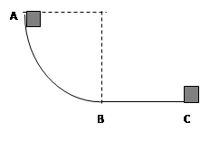 1、计算题  (8分)如图所示,用同种材料制成的一个轨道ABC,AB段为四分之一圆弧,半径为R=2m,BC段为水平放置的轨道。一个物块质量为m=2kg,与轨道的动摩擦因数为μ=0.25,它由轨道顶端A从静止开始下滑,恰好运动到C端停止,测得物块滑至底端B点的速度为5m/s,求:(g取10m/s2)