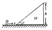 4、选择题  如图所示在足够长的光滑水平面上有一静止的质量为M的斜面,斜面表面光滑、高度为h、倾角为θ。一质量为m(m<M)的小物块以一定的初速度沿水平面向右运动,不计冲上斜面过程中机械能损失。如果斜面固定,则小物块恰能冲到斜面顶端。如果斜面不固定,则小物块冲上斜面后能达到的最大高度为?