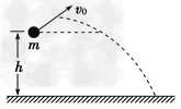 3、选择题 如图所示,某人将质量为m的石块从距地面h高处斜向上方抛出,石块抛出时的速度大小为v0,不计空气阻力,石块落地时的动能为