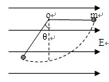4、计算题 两平行板间有水平匀强电场,一根长为L=0.1m,不可伸长的不导电细绳的一端连着一个质量为 m=0.1g、带电量为q=5x10-6C的小球,另一端固定于O点.把小球拉起直至细线与电场线平行,然后无初速度释放.已知小球摆到最低点的另一侧,线与竖直方向的最大夹角为θ=37°求