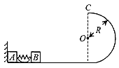 1、计算题 光滑水平面上放着质量,mA=1kg的物块A与质量mB=2kg的物块B,A与B均可视为质点,A靠在竖直墙壁上,A、B间夹一个被压缩的轻弹簧(弹簧与A、B均不拴接),用手挡住B 不动,此时弹簧弹性势能EP=49J。在A、B间系一轻质细绳,细绳长度大于弹簧的自然长度,如图所示。放手后B向右运动,绳在短暂时间内被拉断,之后B冲上与水平面相切的竖直半圆光滑轨道,其半径R=0.5m,B恰能到达最高点C。g=10m/s2,求