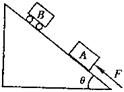 4、计算题 (16分)如图所示,在倾角为θ=37°的足够长的固定斜面上,物体A和小车B正沿着斜面上滑,A的质量为mA=0.50kg,B的质量为mB=0.25kg,A始终受到沿斜面向上的恒力F的作用.当A追上B时,A的速度为vA=1.8m/s,方向沿斜面向上,B的速度恰好为零,A、B相碰,相互作用时间极短,相互作用力很大,碰撞后的瞬间,A的速度变为v1=0.6m/s,方向沿斜面向上.再经T=0.6s,A的速度大小变为v2=1.8m/s,在这一段时间内A、B没有再次相碰.已知A与斜面间的动摩擦因数μ=0.15,B与斜面间的摩擦力不计,已知:sin37°=0.6,重力加速度g=10m/s2,求: