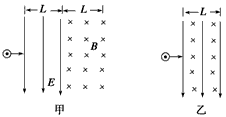 ;若把电场和磁场正交叠加,如图乙所示,粒子仍以初速度