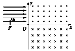 4、选择题 如图所示,在第二象限内有水平向右的匀强电场,电场强度为E,在第一、第四象限内分别存在如图所示的匀强磁场,磁感应强度大小相等。有一个带电粒子以初速度v0垂直x轴,从x轴上的P点进入匀强电场,恰好与y轴成45°角射出电场,再经过一段时间又恰好垂直于x轴进入下面的磁场。已知OP之间的距离为d,则带电粒子