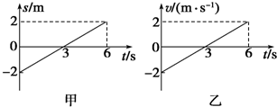 4、选择题 物体甲的位移s与时间t图象如图甲所示,物体乙的速度v与时间t图象如图乙所示,则下列判断正确的是( )