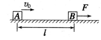5、计算题 如图所示,水平面上放有质量均为m="l" kg的物块A和B,A、B与地面的动摩擦因数分别为μ1=0.4和μ1=0.1,相距l=0.75m.现给物块A一初速度使之向B运动,与此同时给物块B一个F="3" N的水平向右的力,B由静止开始运动,经过一段时间A恰好追上B且二者速度相等。g="10" m/s2,求:
