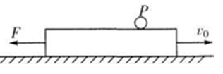 2、计算题 如图所示,长L=1.5m,高h=0.45m,质量M=10kg的长方体木箱,在水平面上向右做直线运动.当木箱的速度V0=3.6m/s时,对木箱施加一个方向水平向左的恒力F=50N,并同时将一个质量m=1kg的小球轻放在距木箱右端L/3的P点(小球可视为质点,放在P点时相对于地面的速度为零),经过一段时间,小球脱离木箱落到地面.木箱与地面的动摩擦因数为0.2,其他摩擦均不计.取,求: