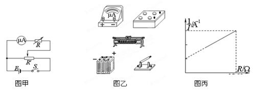 ④若操作过程中得到如图丙所示的(1/I—R)图线,若已知斜率为k,纵截距为b,则根据图线,求得电流表内阻Rg=?(请用字母表示);