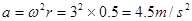 5、填空题  一物体在水平面上做匀速圆周运动,质量为1kg,物体做圆周运动的角速度为3.0rad/s,半径为0.5m,该物体做圆周运动的线速度为_______m/s,向心加速度为____m/s2,受到的向心力为________N