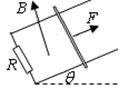 1、选择题 如图所示,下端接有电阻R的“U”形光滑金属导轨与水平面成θ角,导轨所在空间有一与导轨平面垂直的匀强磁场。导轨上有一个金属棒,金属棒与两导轨垂直且接触良好,在沿着斜面向上且与棒垂直的拉力F作用下,金属棒沿导轨匀速上滑,则下列说法正确的是
