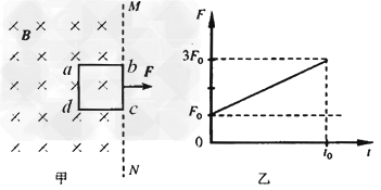 的匀强磁场。现将一边长为l、质量为m、电阻为R的正方形金属线框置于该磁场中,使线框平面与磁场垂直,且bc边与磁场边界MN重合。当t= 0时,对线框施加一水平拉力F,