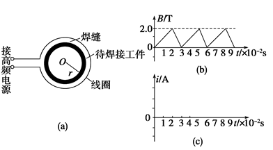 ?A(2分),设在t=0.10 s内电流通过焊接处所产生的焦耳热为Q,则Q=I2R1t,而R1=9×2πrR0=5.65×10-3 Ω,代入解得Q=8.4×102 J.(2分)