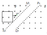 5、选择题 如图,MN、PQ为磁场的理想边界,MN左上方磁场垂直于纸面向里,PQ右下方磁场垂直于纸面向外,磁场左右无边界,磁感应强度大小相同,MN、PQ间距离为d,都与水平成45°角.一个边长为