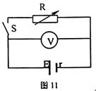 1、简答题 (8分)如图11所示,R为电阻箱,V为理想电压表,当开关S闭合,电阻箱读数为2Ω时,电压表示的读数为4V,当开关S断开时,电压表的读数为6V。求: