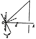 5、填空题 如图所示,从竖直墙上的小孔A中沿垂直墙壁方向射出一束光线,照射到平面镜上的O点,开始时平面镜与墙壁平行,两者相距为d,平面镜绕光线入射点O逆时针以角速度ω匀速转动,当转动到与初始位置成22.5°时,墙壁上光点的瞬时速度是多大______________?