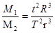 4、计算题 地球绕太阳公转周期和公转轨道半径分别为T和R,月球绕地球公转周期和公转轨道半径分别为t和r,试求太阳质量和地球质量的比值。
