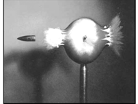 4、选择题 如图2为高速摄影机拍摄到的子弹穿过苹果瞬间的照片。该照片经放大后分析出,在曝光时间内,子弹影像前后错开的距离约为子弹长度的1%~2%。已知子弹飞行速度约为500 m/s,因此可估算出这幅照片的曝光时间最接近( )