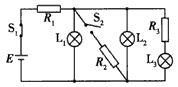 3、选择题 如图所示,电动势为E、内阻不计的电源与三个灯泡和三个电阻相接,只合上开关S1,三个灯泡都能正常工作,如果再合上S2,则下列表述正确的是