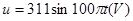 由图知:最大值Um=311V有效值周期T="0.02s" 表达式?选BC。