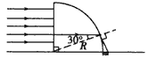 透明圆柱体固定于地面上,透明体对红光的折射率为n=2,如图所示。今让一束平行于地面的红光射向圆柱体左侧,经折射红光照射到右侧地面上,求圆柱体右侧地面上的黑暗部分长度。