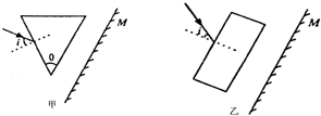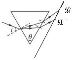 1、选择题 如图甲所示,某玻璃三棱镜的顶角为θ,恰好等于绿光的临界角.当一束白光通过三棱镜,在光屏M上形成红橙黄绿蓝靛紫的彩色光带后,将白光束的入射角i逐渐减小到0,则以下说法正确的是( )