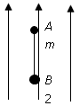4、计算题 如图所示,小球A和B带电荷量均为+q,质量分别为m和2m,用不计质量的竖直细绳连接,在竖直向上的匀强电场中以速度v0匀速上升,某时刻细绳突然断开。小球A和B之间的相互作用力忽略不计。求: