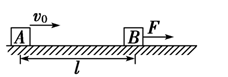 5、计算题 (2011年皖南八校联考) 如图所示,水平面上放有质量均为m=1 kg的物块A和B(均视为质点),A、B与地面的动摩擦因数分别为μ1=0.4和μ2=0.1,相距l=0.75 m.现给物块A一初速度使之向物块B运动,与此同时给物块B一个F=3 N水平向右的力使其由静止开始运动,经过一段时间A恰好能追上B.g=10 m/s2.求: