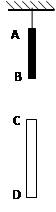 4、计算题  (14分)用细绳将木棒AB的A端吊在天花板上,使木棒在竖直方向上静止不动。在A端正下方有一根半透明的玻璃管CD竖直固定在空中,已知点C端距A端1m,管CD长度为0.8m,把细绳轻轻剪断,测得木棒AB通过玻璃管CD的时间间隔为0. 4s,重力加速度