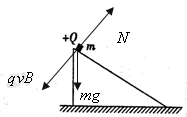 本题解析:沿斜面下滑过程,根据洛伦兹力的判断方法,磁感线穿过左手手心,四指指向正电荷运动方向,大拇指所指的就是洛伦兹力方向即垂直斜面向下选项C对。受力分析如下图。