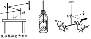 如图所示,以下是力学中的三个实验装置,由图可知这三个实验共同的物理思想方法是( ? )