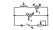 本题解析:闭合开关瞬间,电感线圈产生与原电流方向相反的自感电流阻碍原电流的增大,灯泡L1逐渐亮起来,断开开关时,线圈产生与原电流方向相同的自感电流阻碍原电流的减小,亮灯泡都逐渐熄灭,电流方向顺时针,AC对