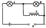 4、选择题 在如图所示的电路中,L为自感系数较大的电感线圈,且电阻不计;A、B为两个完全相同的灯泡,且它们的额定电压均等于电源的电动势。则: