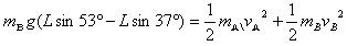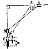 1、计算题  某机械打桩机原理可简化为如图所示,直角固定杆光滑,杆上套有mA=55kg和mB=80kg两滑块,两滑块用无弹性的轻绳相连,绳长为5m,开始在外力作用下将A滑块向右拉到与水平夹角为37°时静止释放,B滑块随即向下运动带动A滑块向左运动,当运动到绳子与竖直方向夹角为37°时,B滑块(重锤)撞击正下方的桩头C,桩头C的质量mC=200kg。碰撞时间极短,碰后A滑块由缓冲减速装置让其立即静止,B滑块反弹上升h1=0.05m,C桩头朝下运动h2=0.2m静止。取g=10m/s2。求:
