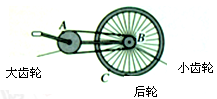 4、选择题 如图所示,自行车的大齿轮、小齿轮、后轮三个轮子的半径不一样,它们的边缘有三个点A、B、C.下列说法中正确的是
