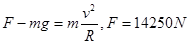 2、填空题 质量为1500kg的汽车以5m/s的速度驶过拱桥顶部。已知拱桥顶部的半径为50m。此时汽车的向心加速度大小为_____,汽车对地面的压力大小为_____。(g取10m/s2)