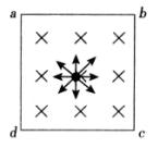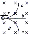 3、选择题 一个不计重力的带正电荷的粒子,沿图中箭头所示方向进入磁场,磁场方向垂直于纸面向里,则粒子的运动轨迹