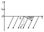 1、计算题 如右图所示,一质量为m、电荷量为+q的粒子,以速度从O点沿y轴正方向射入磁感应强度为B的圆形匀强磁场区域,磁场方向垂直纸面向外,粒子飞出磁场区域后,从b处穿过x轴进入场强为E、方向与x轴负方向成60°角斜向下的匀强电场中,速度方向与 x轴正方向的夹角为30°,经过一段时间后恰好通过b点正下方来源:91考试网 www.91exAm.org的c点,粒子的重力不计.试求: