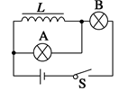 2、选择题 如图所示电路,电感线圈L的自感系数足够大,其直流电阻忽略不计,LA、LB是两个相同的灯泡,设实验过程中灯泡均没有损坏,则